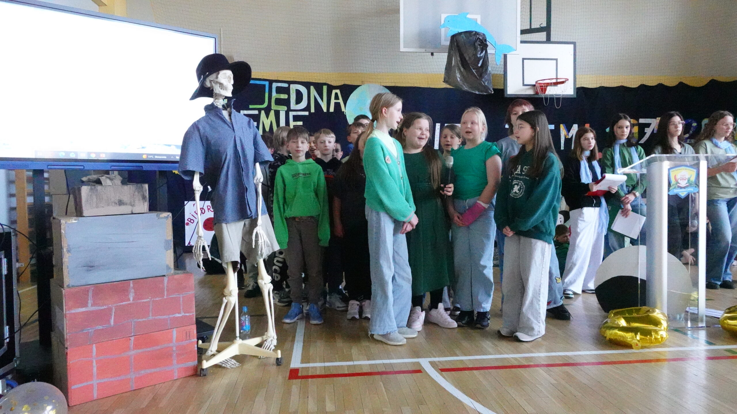 Zupa krem z zielonego groszku (seler) na bulionie warzywnym ze świeżo siekaną natką pietruszki zabielona śmietanką (z mleka) naleśniki z serem białym ze śmietaną (z mleka), banan, kompot owocowy.