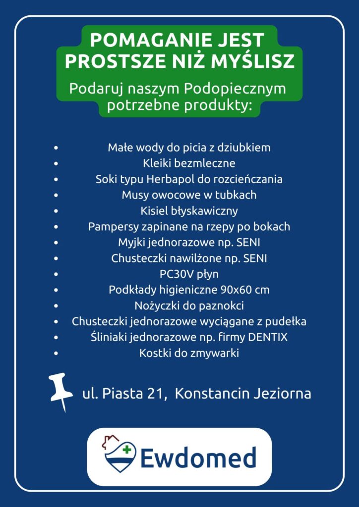 w imieniu Fundacji Ewdomed zachęcam do włączenia się w akcję pomocy dla Podopiecznych Hospicjum z okazji Dnia Chorego.