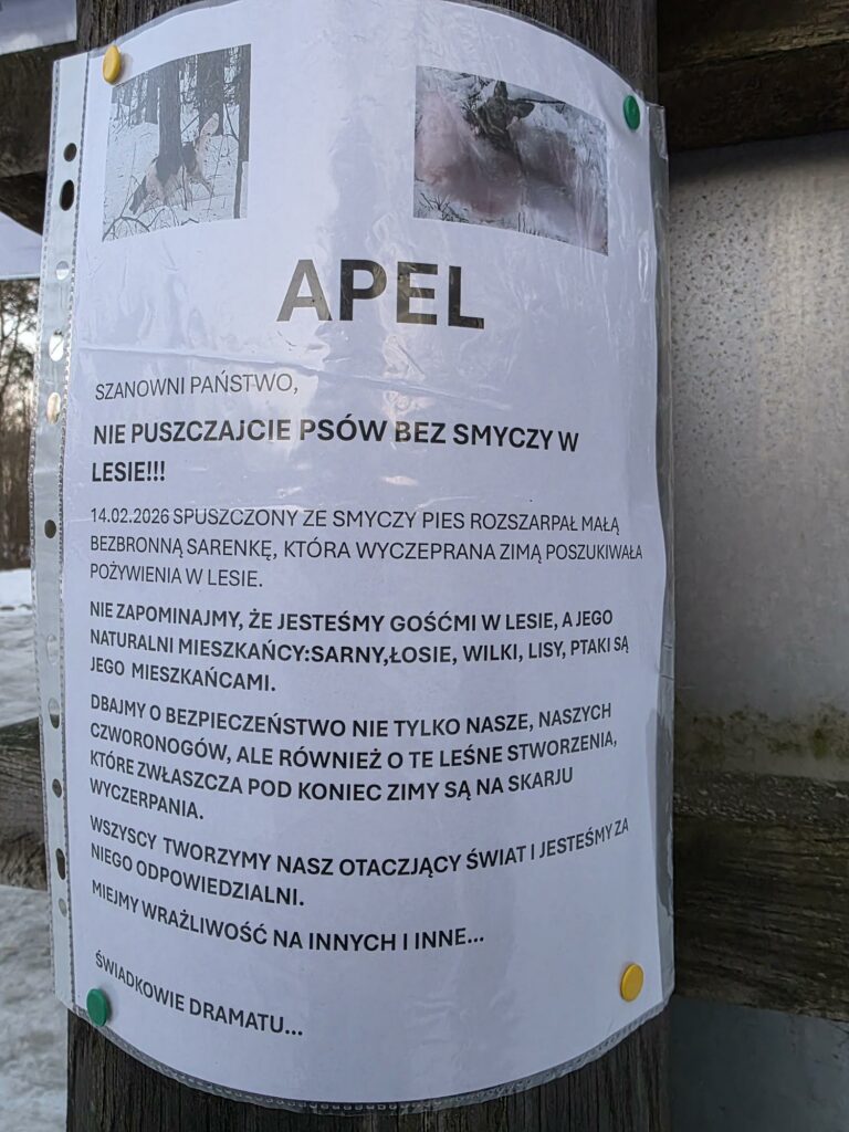 Przyłączam się do apelu, aby nie wprowadzać zwierząt do Puszczy, a jeśli już, nigdy nie spuszczać ich ze smyczy.